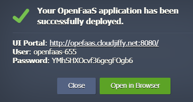 You can automatically get a preconfigured ready-to-work OpenFaaS Application instance up and running within minutes using Cloudjiffy Marketplace.