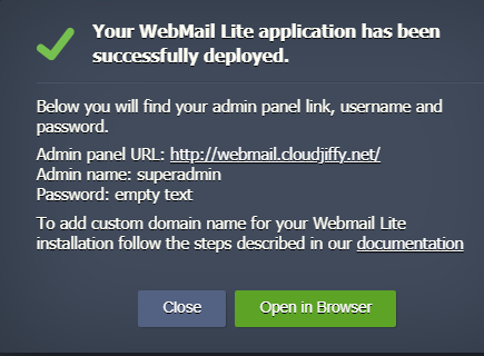 As you can see, the deployment procedure is very straightforward using Cloudjiffy. Now, you can start creating and managing your sites with the wide variety of tools provided by WebMail Lite.