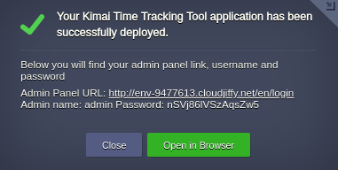 Step 3: Once the installation is done click on the URL to access your Kiami time tracking tool. It’s as simple as that!